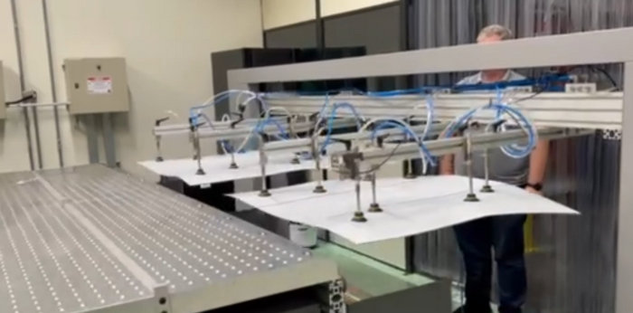 上圖為漢拓國外客戶利用HTA2500 ROBO高速UV打印機(jī)對鍍錫薄板進(jìn)行噴墨加工,配合漢拓獨(dú)特的油墨方案,打印后可直接進(jìn)入下道成型的工序。最高每小時300平方米以上的產(chǎn)能,滿足了客戶日常訂單的需求。自動上下料系統(tǒng),節(jié)省人力,為產(chǎn)線全自動聯(lián)線提供了良好的基礎(chǔ)。