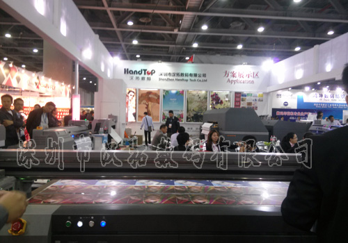 在為期三天的展會中,我公司展出的理光GEN5噴頭HT1600A 雙通道四色加白UV卷板打印機(jī)、理光GEN5噴頭HT2512D 單通道六色加白UV平板打印機(jī)、理光GEN5噴頭HT32OOB 單通道六色加白UV卷板打印機(jī)均在展會現(xiàn)場受到了參展人士的廣泛關(guān)注。非常多的國內(nèi)、國外參展商前來我公司展位現(xiàn)場,詢問并觀看我公司員工現(xiàn)場演示操作機(jī)子打印樣品。在我公司參會人員專業(yè)認(rèn)真的講解和觀看到機(jī)器出樣的打印效果下,客戶紛紛贊嘆我公司的UV打印機(jī)科技含量高,操作便捷,性能優(yōu)異,打印效果完美之至??蛻艏娂娝饕拘麄鲌D冊與樣品,并主動取得我公司的業(yè)務(wù)聯(lián)系方式,并計劃近期前往我公司親自考察試機(jī)購買!