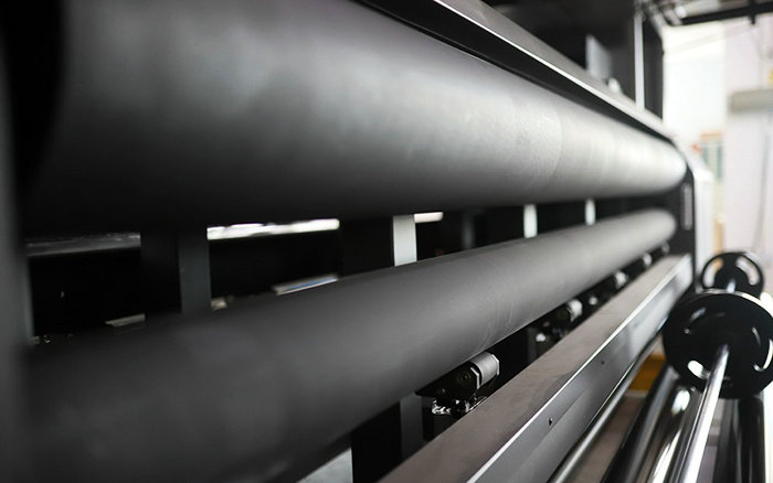 Turbo采用漢拓全系列UV打印機(jī)都有配置的京瓷方案,搭載漢拓第二代京瓷頭板生產(chǎn)模式下產(chǎn)能可達(dá)到155㎡/h。Turbo的前后雙輥托卷經(jīng)過漢拓工程師的調(diào)試,平行精度可達(dá)到0.01mm級別,配合雙驅(qū)動的穩(wěn)定送料,用戶在打印卷材時(shí)只需簡單放置即可進(jìn)行持續(xù)印刷。獨(dú)特的懸空送料設(shè)計(jì),進(jìn)一步提升了設(shè)備對材料的兼容性。