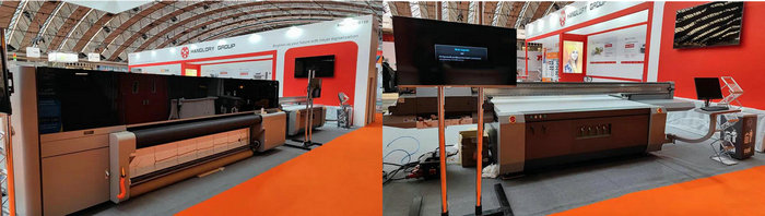 此次展會(huì)亮點(diǎn)機(jī)型HT2500ROBO為UV卷板一體機(jī)設(shè)計(jì),不僅可以打印市面上絕大部分的卷材,還能打印PVC板、瓦楞紙板、木板、鋁板甚至是蜂窩板、中空板等不同材質(zhì)、厚度的板材,實(shí)現(xiàn)了對(duì)不同材質(zhì)的高效打印。該設(shè)備還配備了京瓷工業(yè)級(jí)灰度噴頭,分辨率最高達(dá)363*3600dpi,超高畫質(zhì),生動(dòng)還原色彩世界,為客戶帶來極致視覺盛宴。如此一來,無論追求高速工業(yè)級(jí)產(chǎn)能的制造企業(yè)還是追求更豐富、靈活應(yīng)用的定制化企業(yè),都能從中受益。